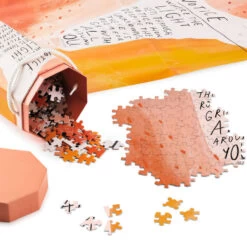 - A Slice of Happy jigsaw puzzle includes 1,000 interlocking pieces in a sturdy storage box.