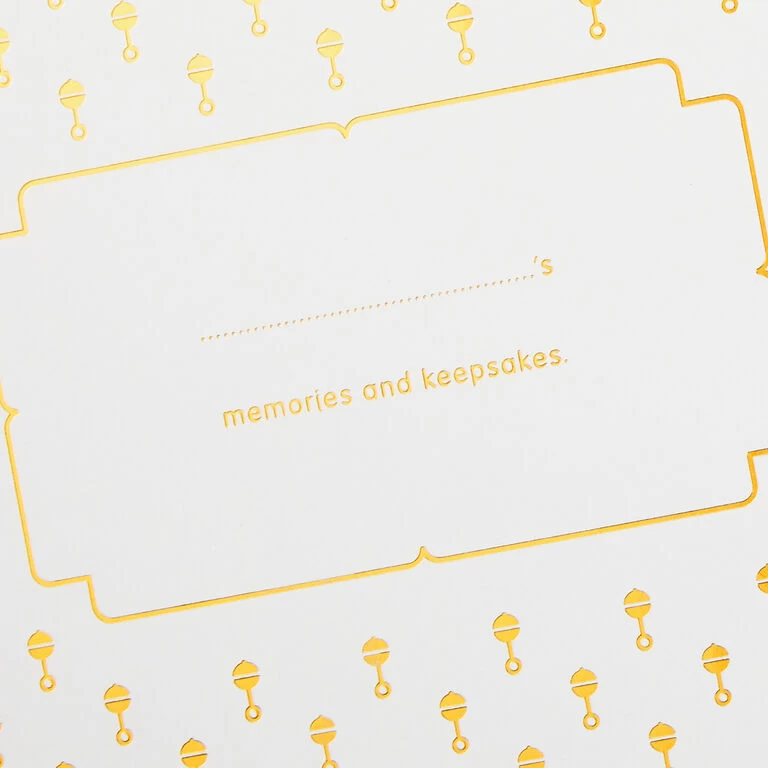 Our sweet memory box is perfect for collecting every tiny keepsake for your new little love. The blue fabric-covered box with gold foil detailing can hold hospital bracelets, booties, locks of hair, teethers and more. It’s just the right spot to store photos, mementos and other treasured objects for safe-keeping.