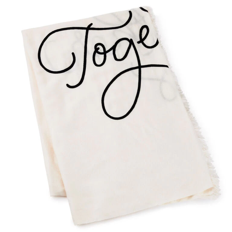 Snuggle up in soft style with this cozy embroidered blanket that features a “Better Together” message in script lettering. Perfect as a Valentine’s Day, wedding or anniversary gift, this soft, fringed acrylic throw makes a great addition to any home.