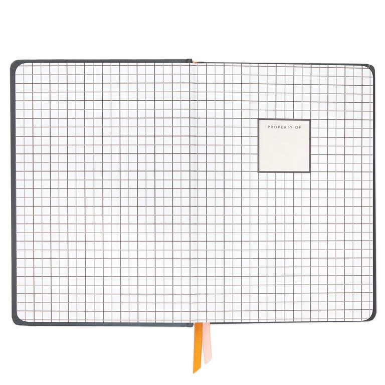 Keep your eye on the prize with this notebook in hand. Our chic gray journal features a gold foil “Going Places” message and bright orange elastic bandāholding your ideas secure when you’re heading from point A to point B. Notebook includes two ribbon bookmarks to mark your place.