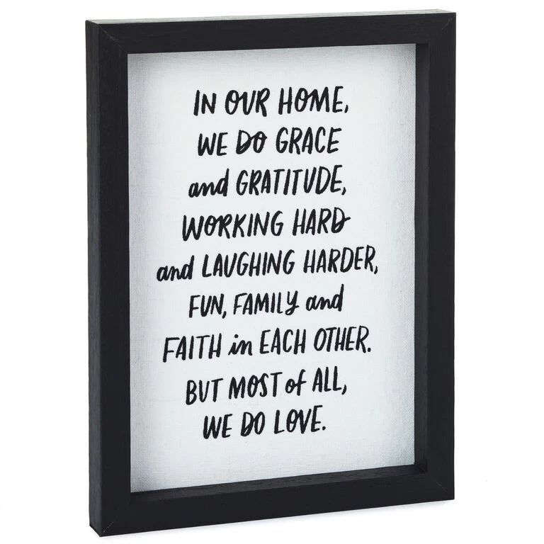 - In our home, we do grace and gratitude, working hard and laughing harder, fun, family and faith in each other. But most of all, we do love.