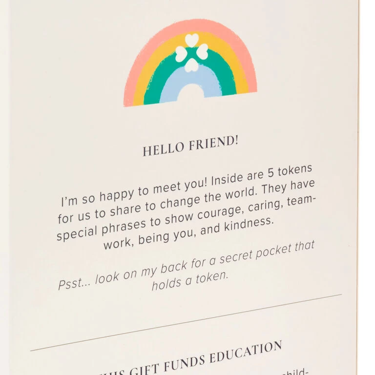 - Box includes one cotton and poly-fiber doll and a kindness kit with five wooden tokens with special phrases to show teamwork, courage, being you, caring and kindness.