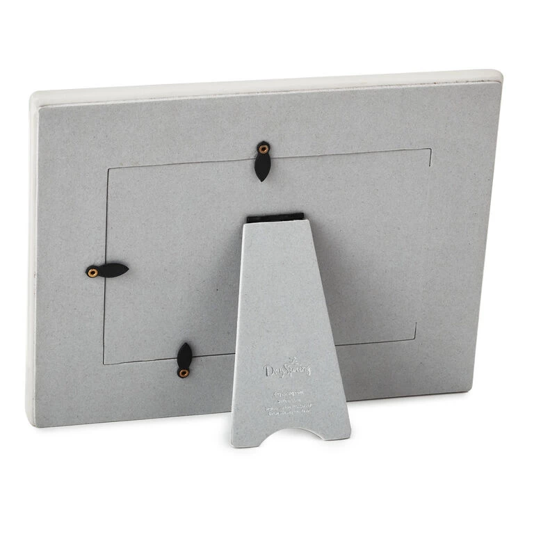 • Ceramic memorial picture frame with printed message holds a horizontal 4″ x 6″ photo.
