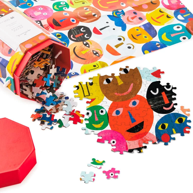 Inspired by simple shapes and colors, Hallmark Artist Lynn Giunta uses scissors to cut out and create her art. The colorful group of smiling friends in this 550-piece puzzle was inspired by the beauty and diversity of chosen families. Our puzzles make a great stay-at-home activity for individuals and families alike.