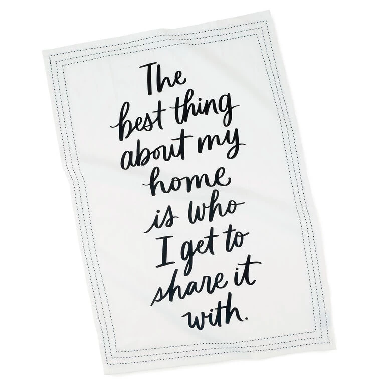 Let all gathering in your home know that you consider them the best with this tea towel featuring a warm message. The soft cotton dish towel features black script lettering on white with stitched design details. This sweet towel makes a considerate hostess or housewarming gift for someone who loves their home and the people in it.