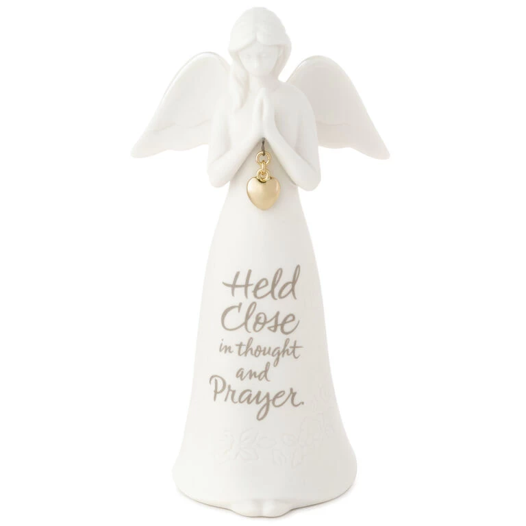 - Ceramic angel figurine by artist Joanne Wright features a gold metal heart attachment, etched details and inspirational message.