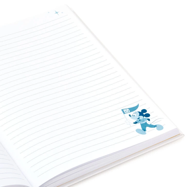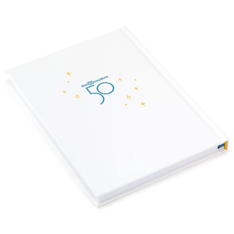 Keep your dreams, wishes, memories and plans close in this beautiful hardcover journal that celebrates the 50th anniversary of Walt Disney World. Cover features an illustration of Cinderella’s Castle and fireworks with gold foil accents. White journal includes lined pages and an attached turquoise ribbon so you can mark a particular page or current place.